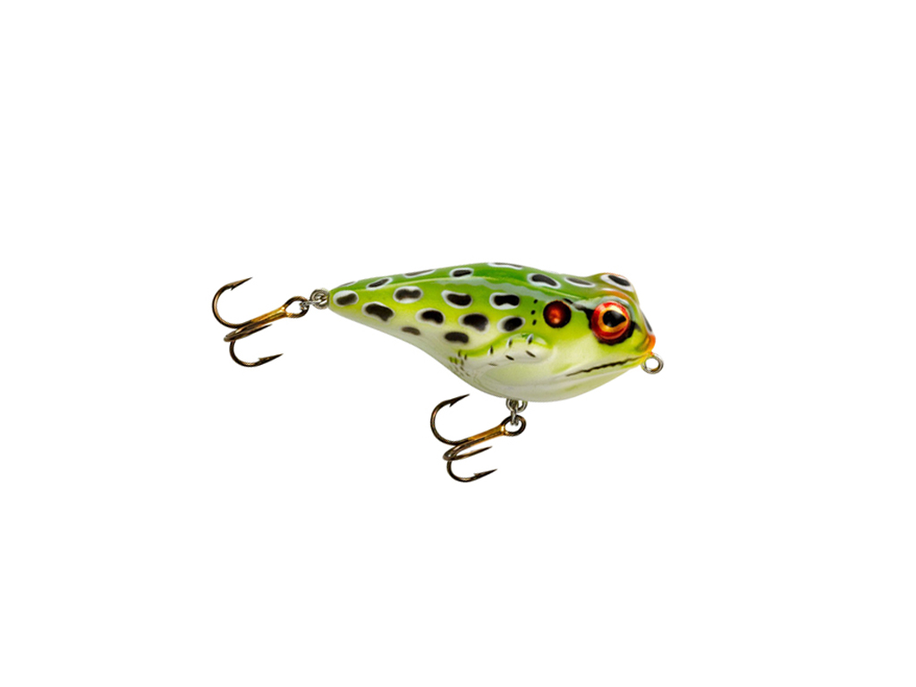 Wir bieten Dir hier den Rebel Frog R an – einen Oberflächenköder, der schnell Aufmerksamkeit auf sich zieht. Du kannst aus vier attraktiven Farben wählen. Mit einer Größe von 6 cm und einem Gewicht von 9 g ist dieser Hardbait ein echter Allrounder. Dieser Köder ist kein Gummifrosch – Meister Esox wird sich daran die Zähne ausbeißen.